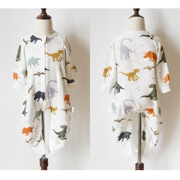 Dinosaur Printed Muslin Baby Pajamas Easy Closure Absorbent No Fluorescent Images |